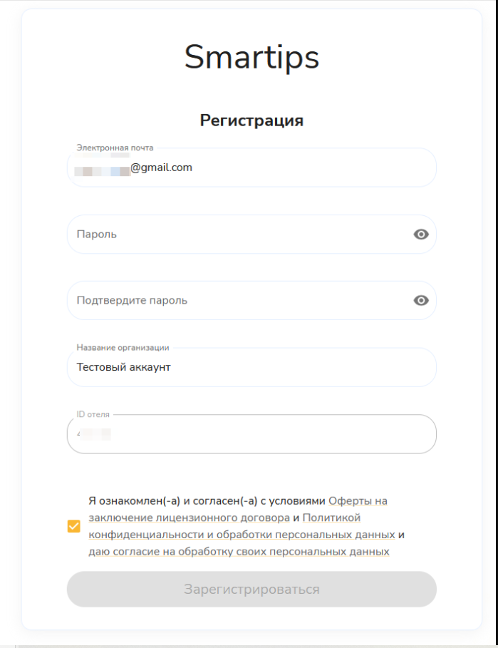 - Вам откроется страница регистрации, где нужно будет заполнить основные данные об отеле.
