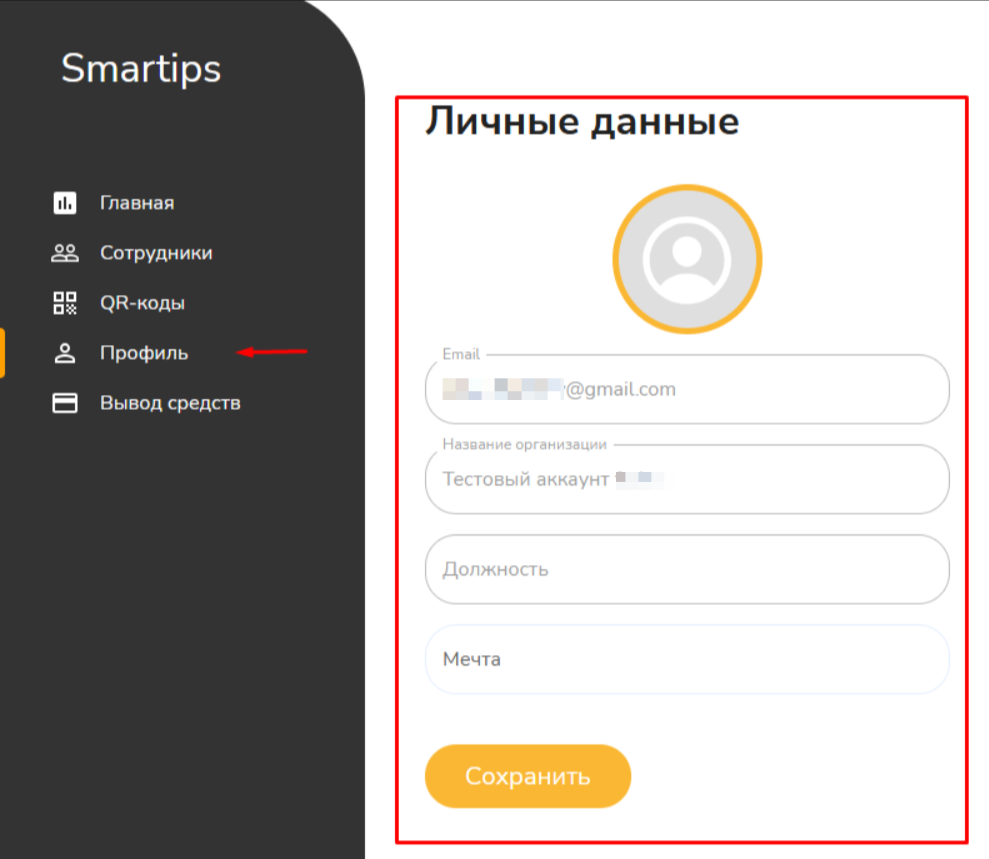Важно: заполненный профиль помогает гостям узнать сотрудника лучше и повышает доверие при оплате чаевых.- Аватар — добавить фото профиля.