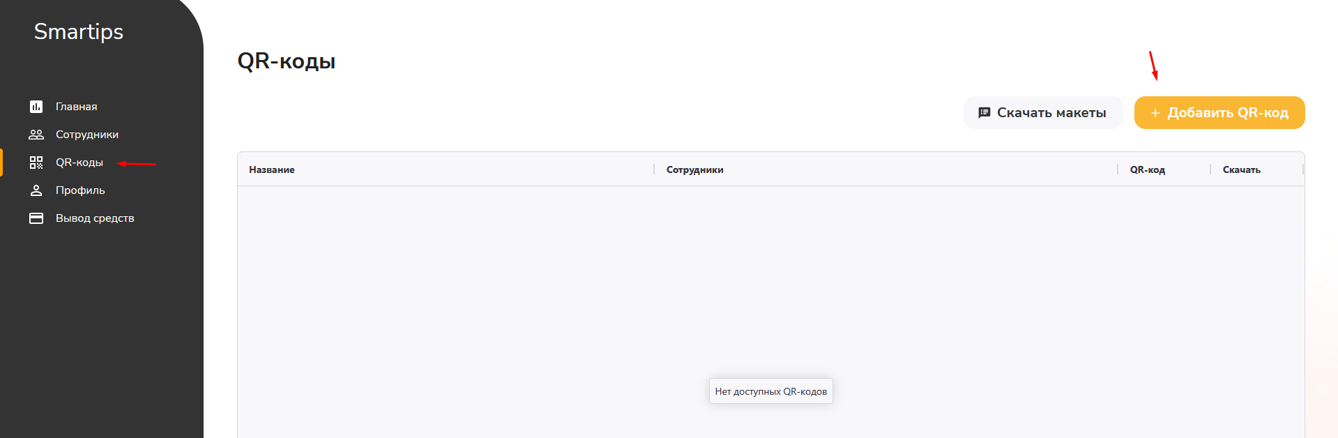 - В меню Smartips найдите пункт «QR-коды»
