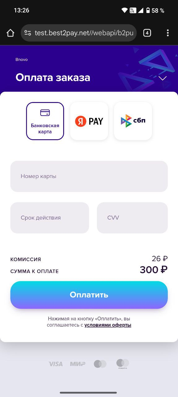 - Для обработки платежей при регистрации сотрудника автоматически создаётся учётная запись в партнёрской системе онлайн-расчётов Best2Pay — ничего дополнительно настраивать не нужно.