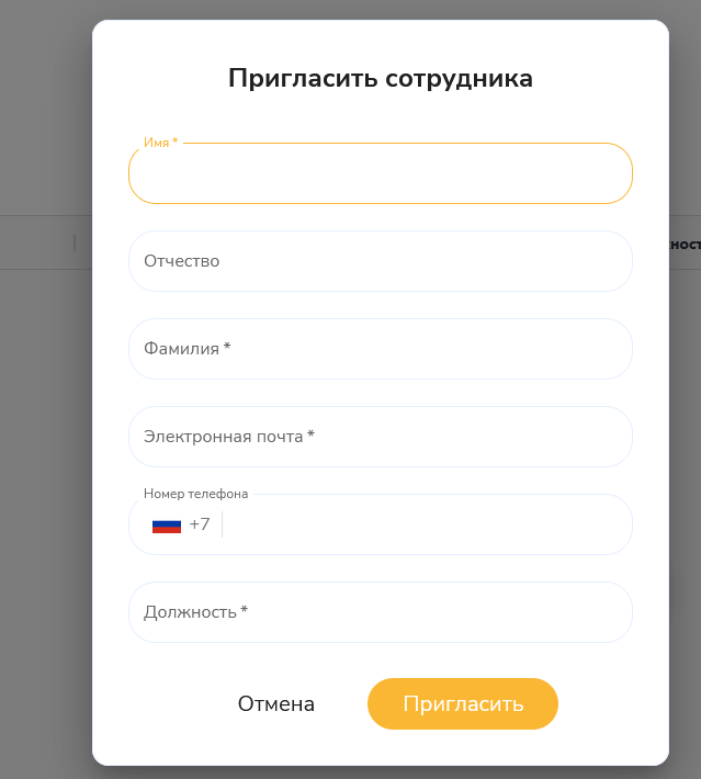 - Управлять списком сотрудников (смотреть, приглашать, редактировать)