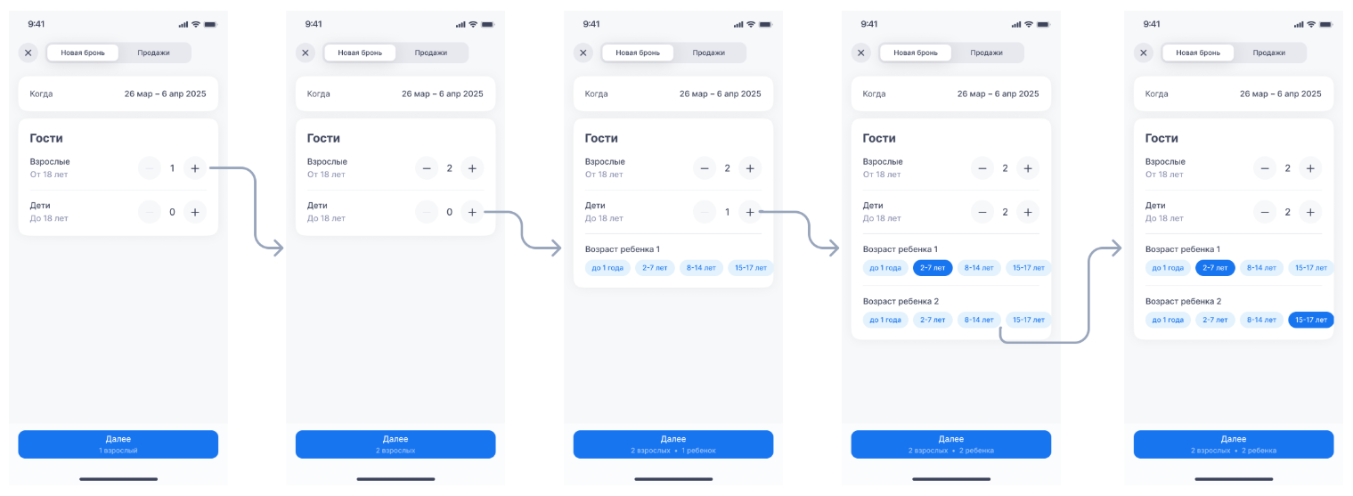 Количество гостей — взрослые и дети