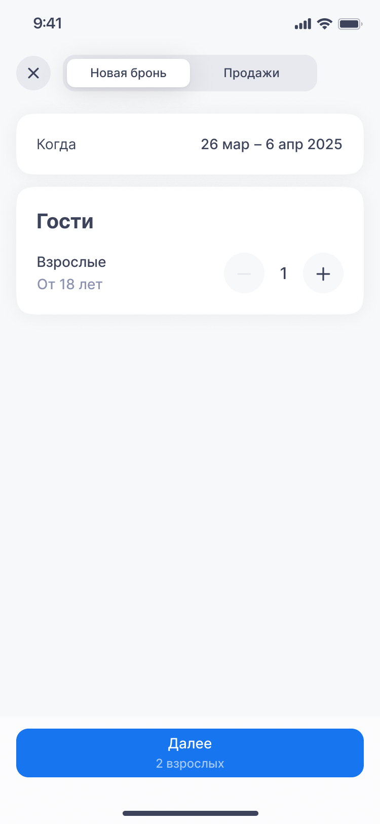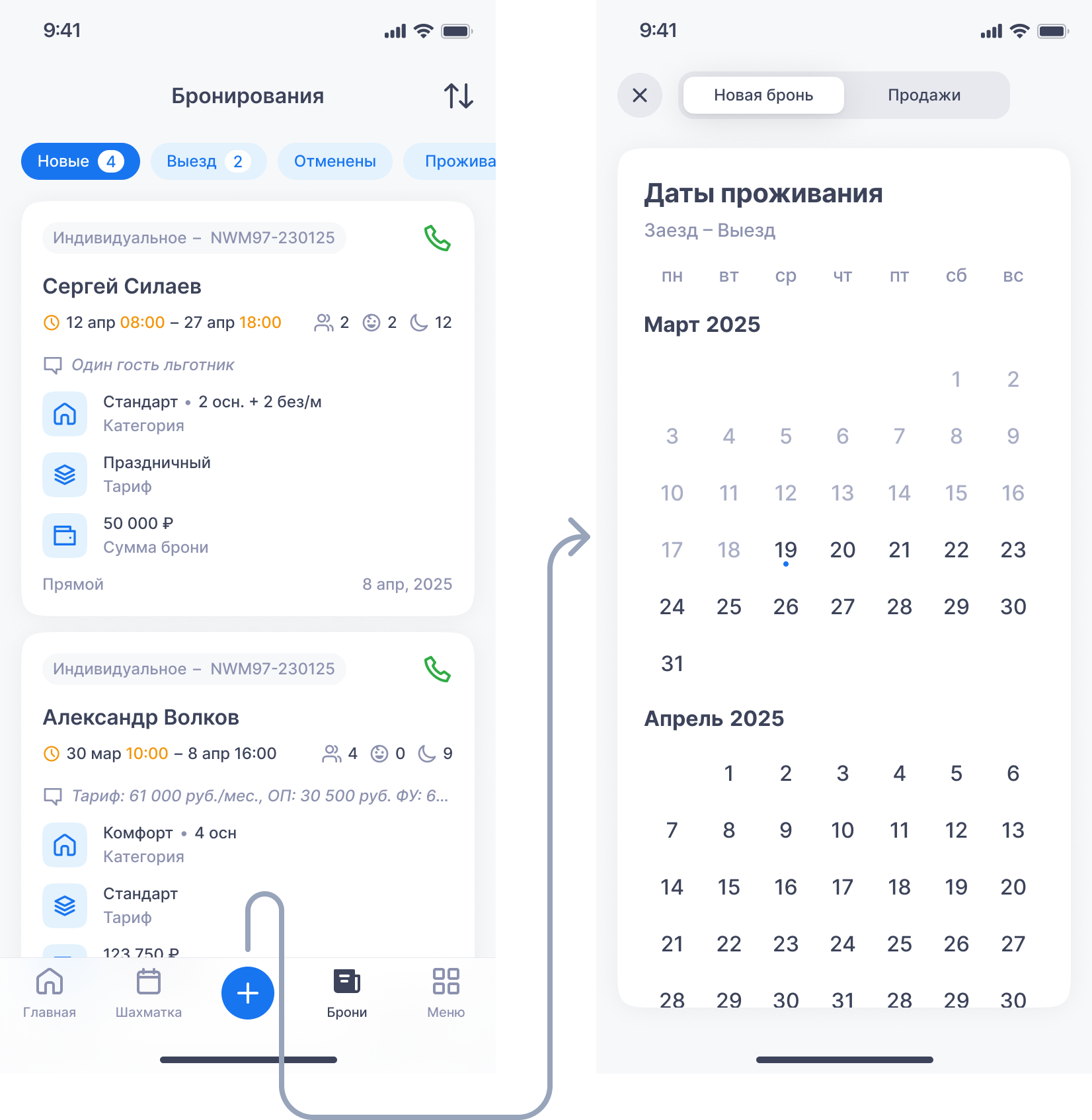 • «Новое» — откроется шаг 1 нового бронирования.