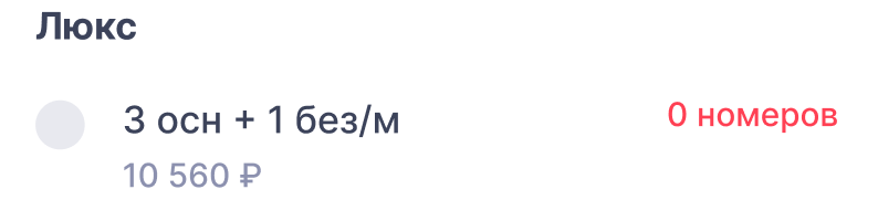 Категория номера и число мест