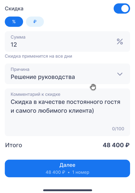 8. Скидка — если была указана при создании бронирования.