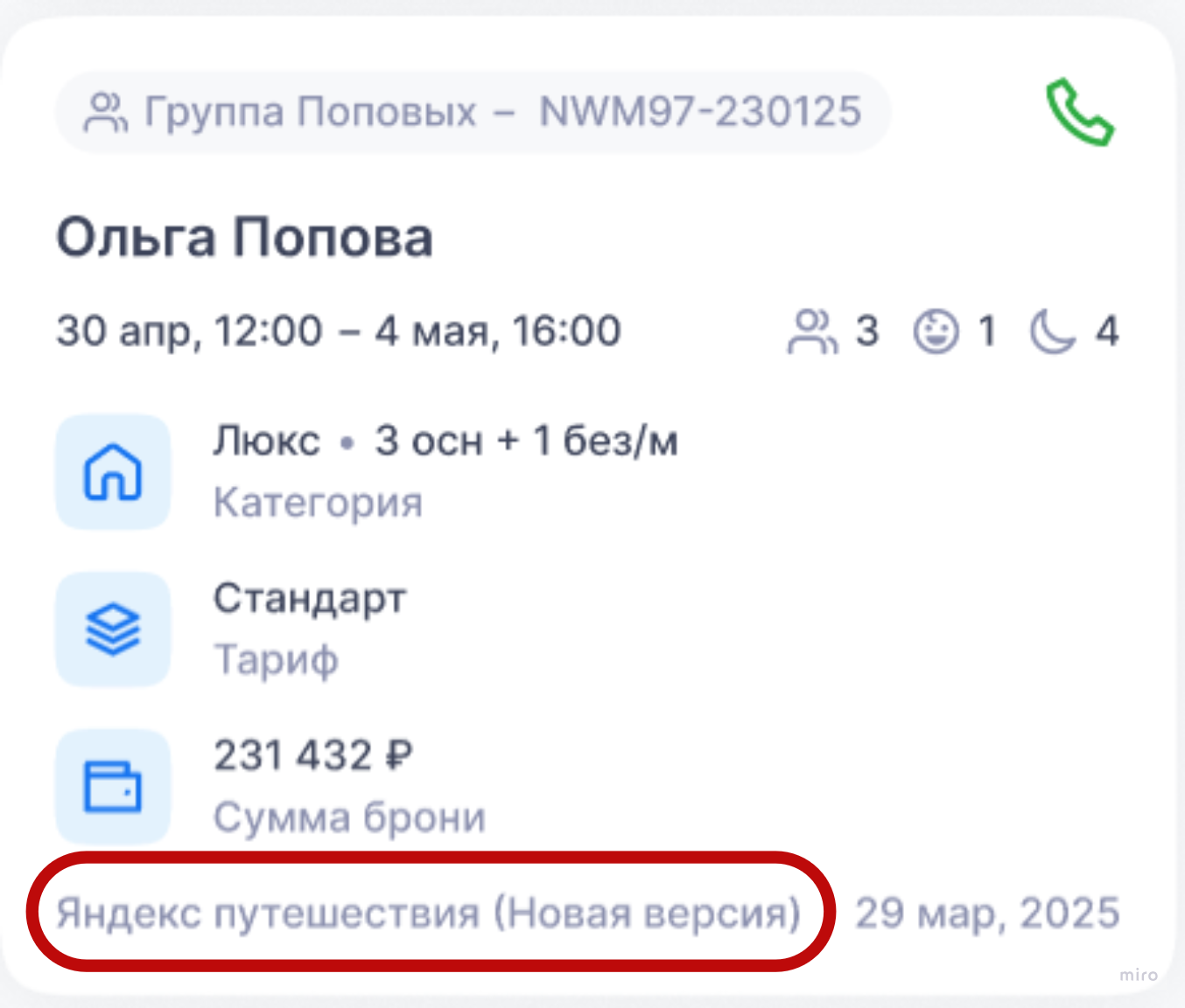 - При групповом бронировании в блоке будет стрелка для перехода к составу группы.