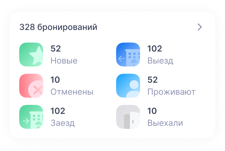 Виджет помогает оценить загрузку персонала и число ожидаемых гостей.