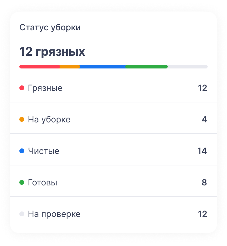 Статусы зависят от настроек модуля уборки Bnovo. Доступно 5 статусов уборки: