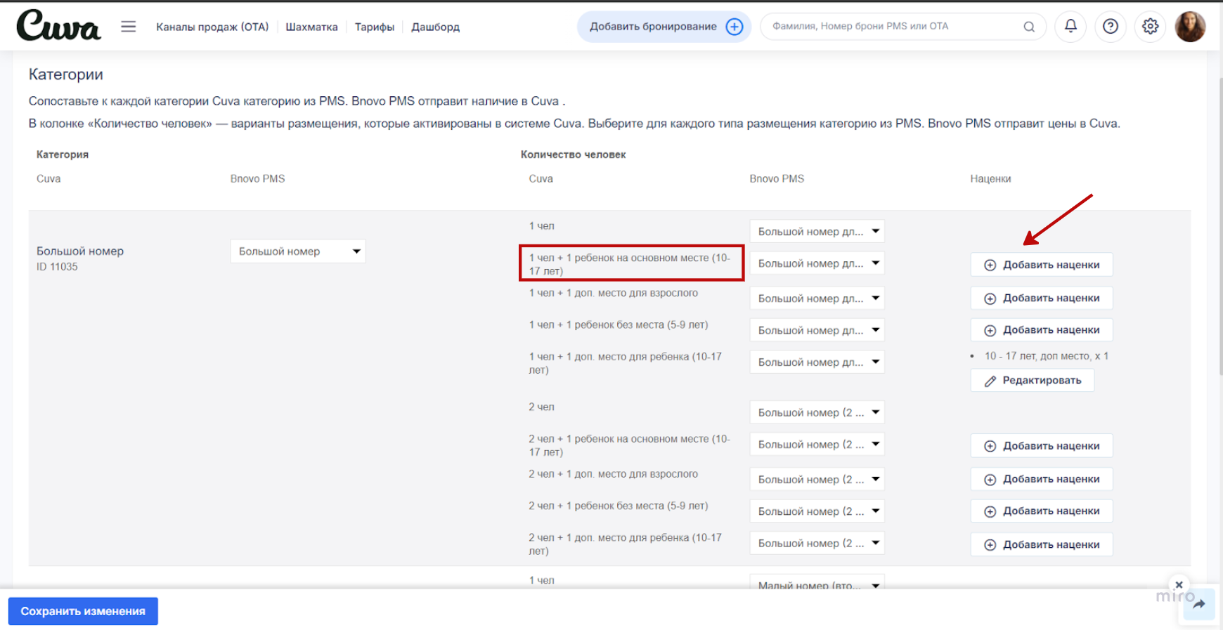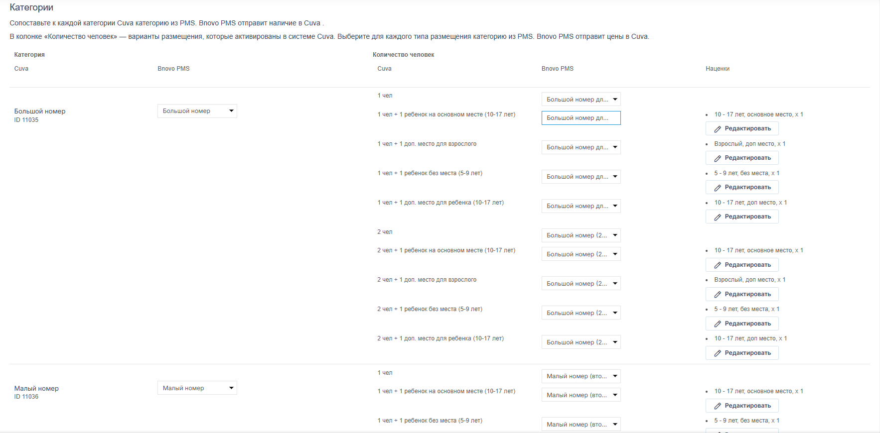 - Сопоставьте категории из Cuva с категориями в PMS.