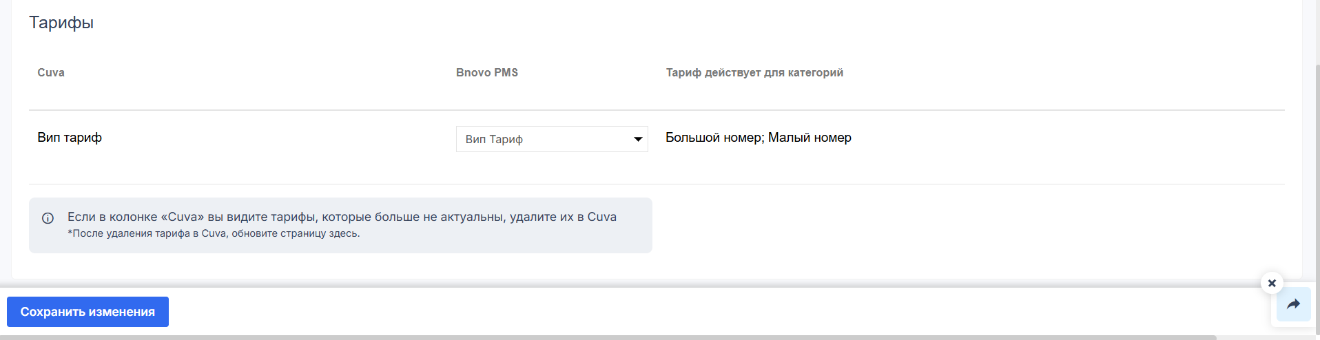 5. Сопоставьте тарифы → нажмите «Сохранить изменения».