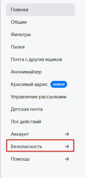Перейдите в настройки почтового ящика Mail (слева внизу страницы «Настройки» → «Все настройки») → выберите Безопасность