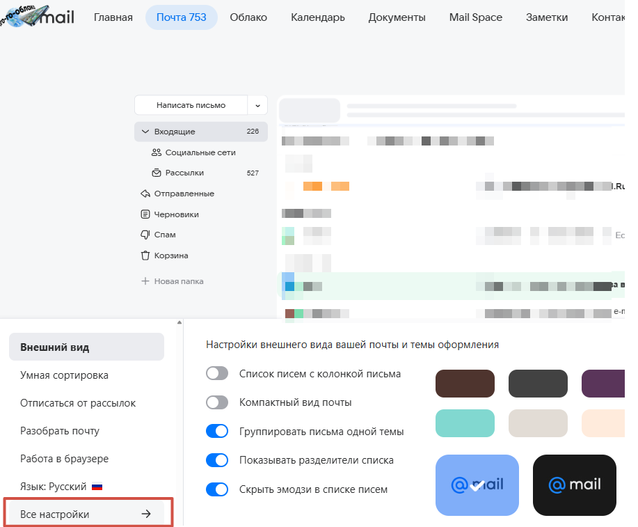 - Перейдите в настройки почтового ящика Яндекс
