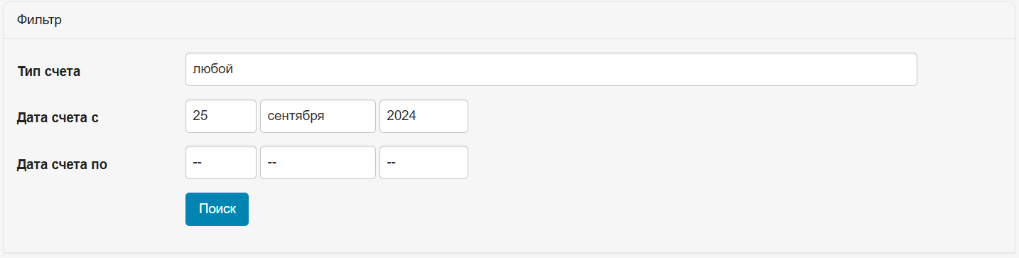 Этот блок полезен тем, что позволяет отсортировать список счетов по нужному типу и датам.