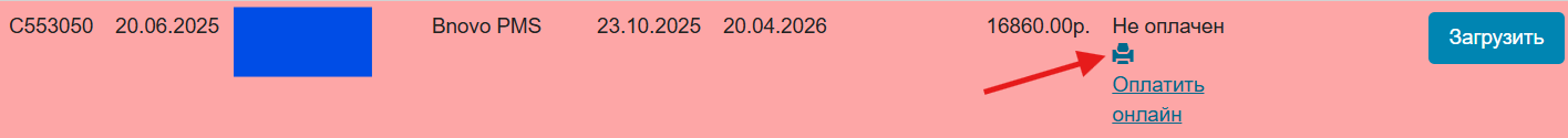 Нажав, можно скачать счёт на оплату в формате PDF.