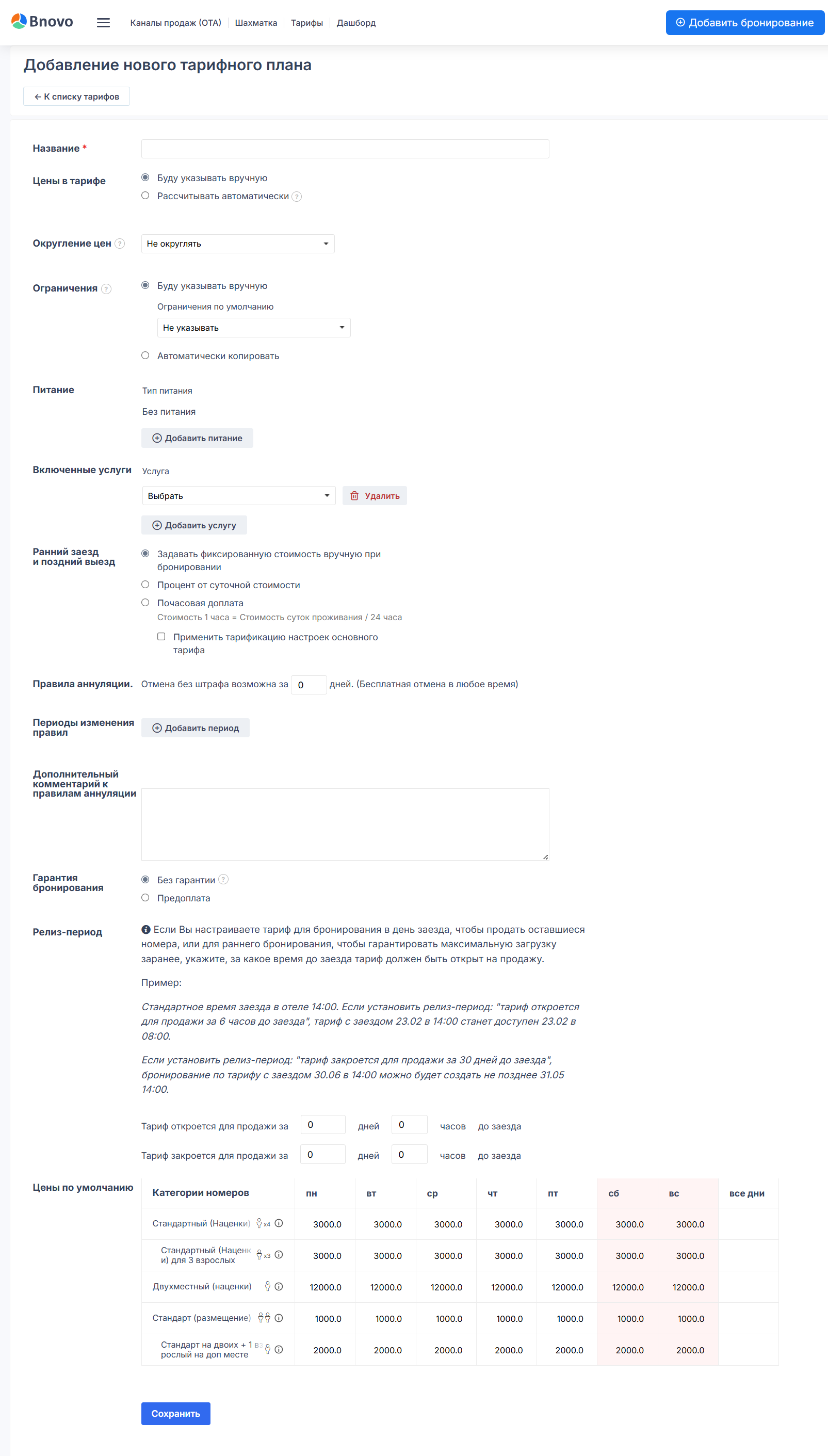 - Ведите название тарифа для гостя (будет отображаться на модуле бронирования).