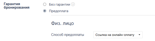 | Гарантия бронирования | Условия оплаты бронирования, включая предоплату, оплату по ссылке или оплату при заселении. |