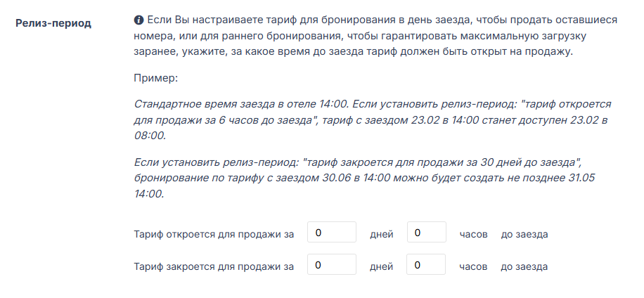 | Релиз-период | Период времени, в течение которого тариф доступен для бронирования. |