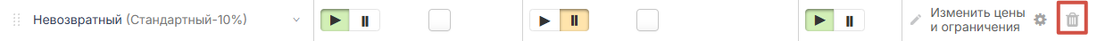 Управляйте активностью тарифа прямо в списке тарифов через кнопки Play ▶️ и Пауза ⏸️ в специальных столбцах.