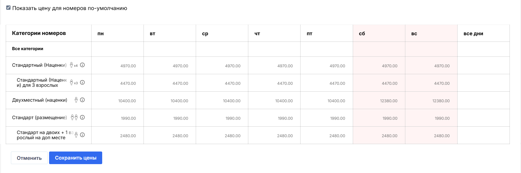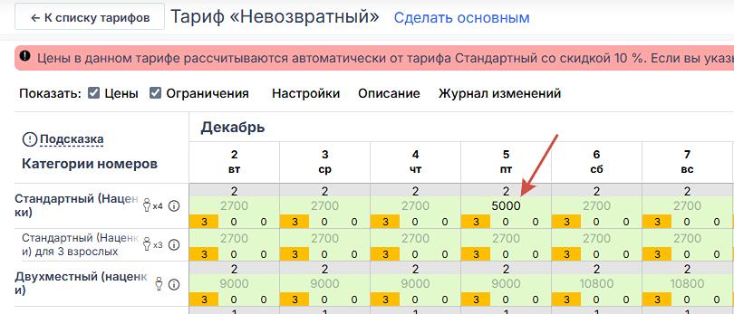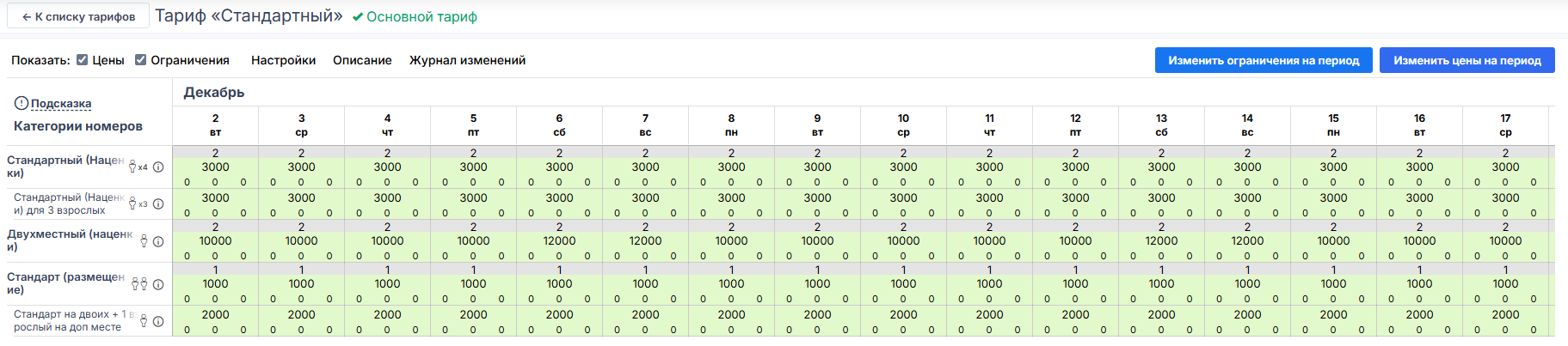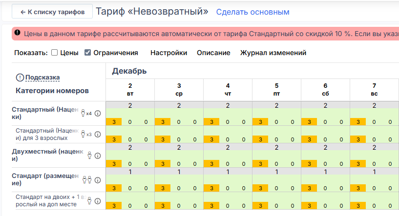 Записывается каждое изменение стоимости: кто, когда и на какую сумму изменил цену на конкретную дату. Это помогает понять, почему в шахматке стоит именно такая цена. - Изменения ограничений: