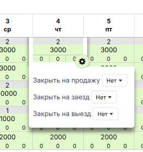 | Закрыт на заезд | Запрещает начинать проживание в конкретную дату.