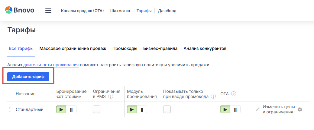 Эта статья подробно описывает полный цикл работы с тарифами в Bnovo: от создания и настройки до редактирования цен, ограничений и удаления.