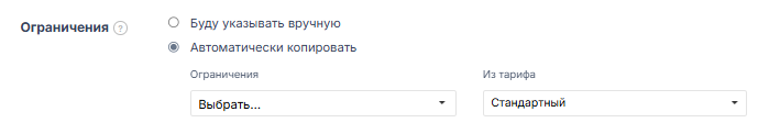 2. Выберите тариф, из которого вы будете копировать ограничения