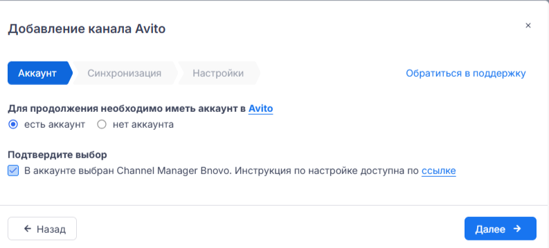 Важно: если в Bnovo добавить несколько каналов Авито с одинаковым ID аккаунта, есть риск остановки каналов Авито при отправке обновлений в канал продаж.