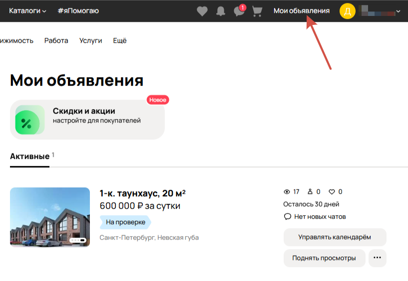 - После этого вы будете перенаправлены в личный кабинет Avito.