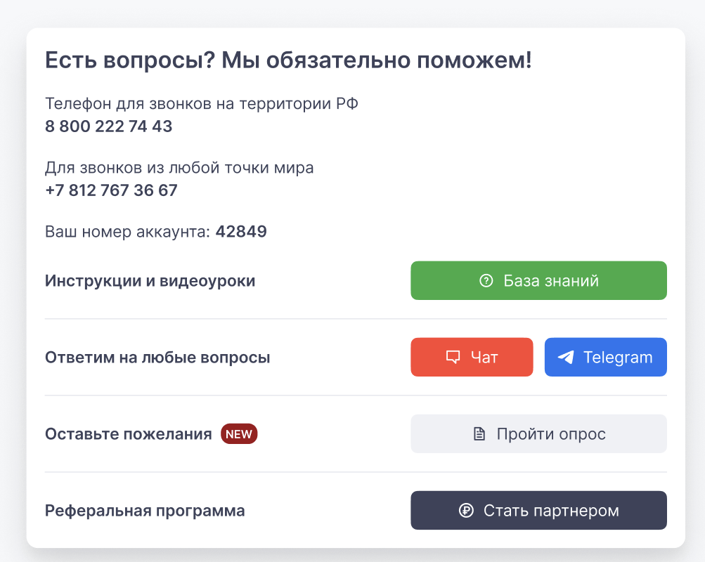 Подробные инструкции доступны в нашей Базе знаний.