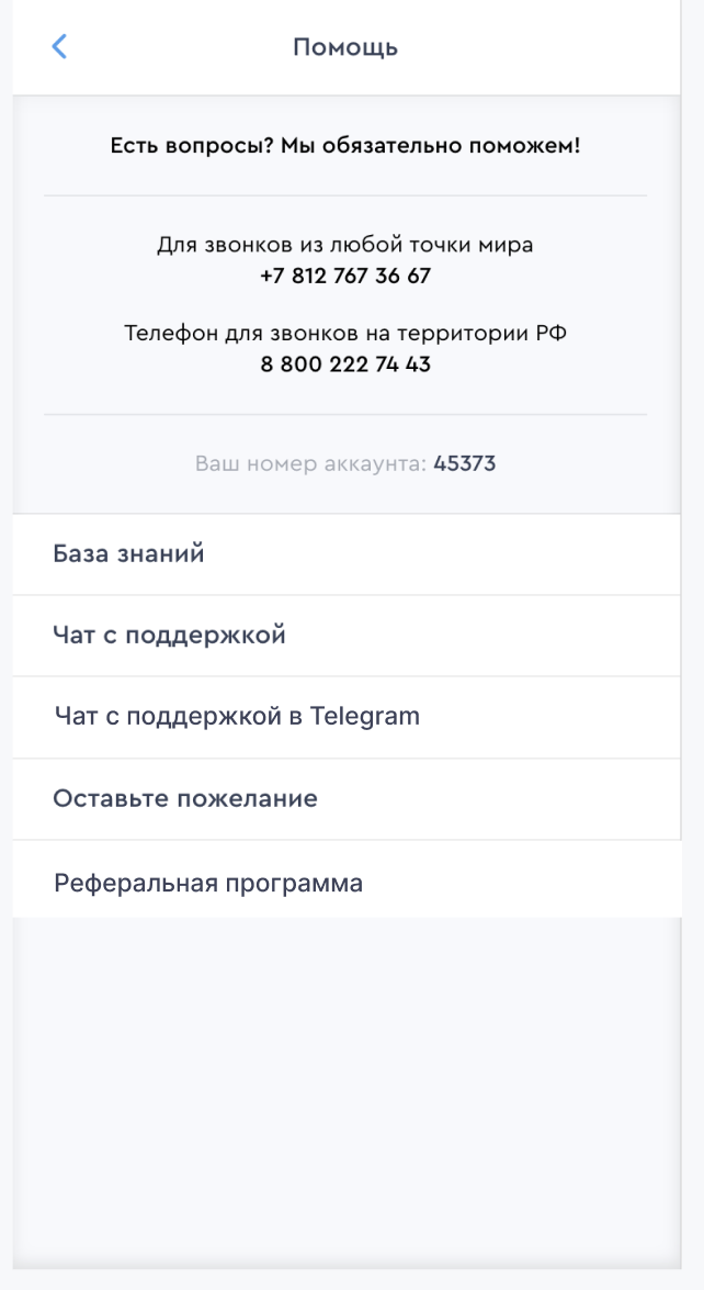 - Чат с поддержкой — начните прямо в системе, нажмите «Начать чат».