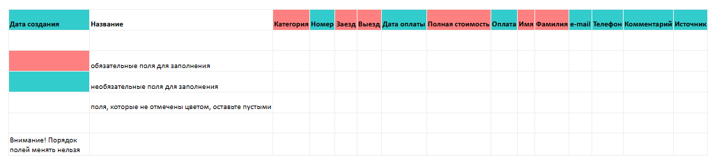 Заполненный файл отправьте нам на help@bnovo.ru — мы загрузим бронирования в вашу систему.